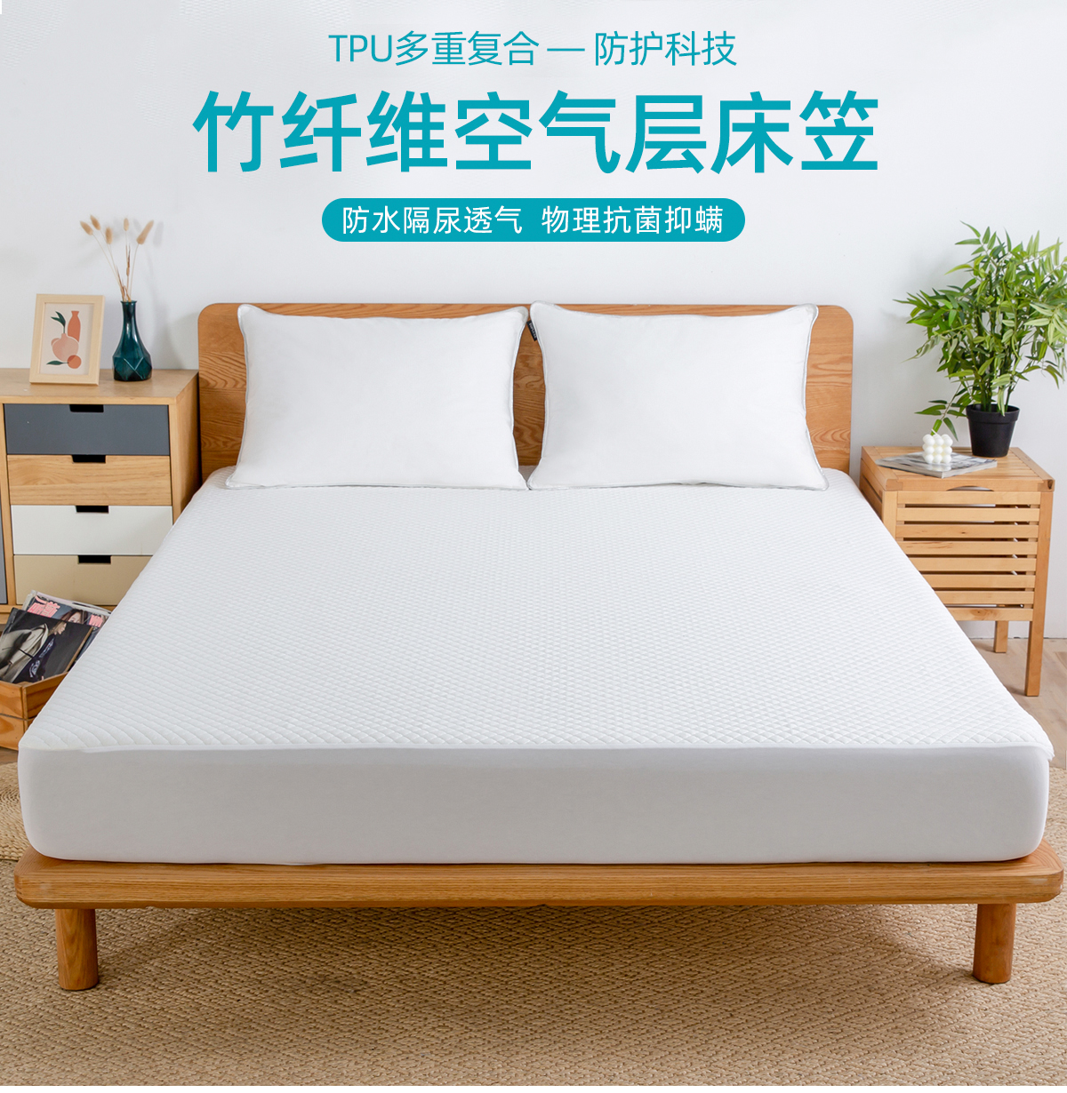 竹纤维空气层防水床笠